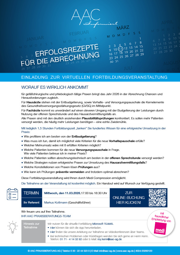 Für gefäßchirurgische und phlebologisch tätige Praxen bringt das Jahr 2026 in der Abrechnung Chancen und Herausforderungen zugleich.